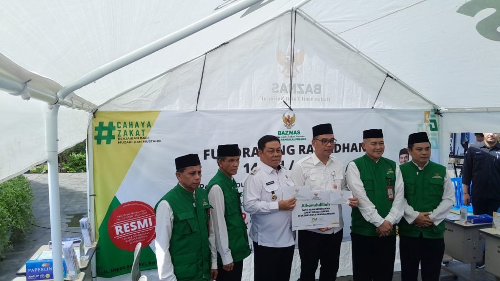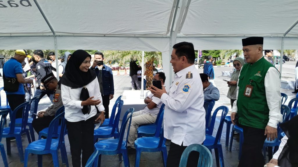 PLT Camat dan Kasi Pemerintahan Kecamatan Taman Sari Menghadiri Kegiatan Fundraising/ Pengumpulan Zakat Infaq Sedekah dan DSKL di Bulan Ramadhan 1446H/ 2025M di Halaman Masjid Agung Kubuh Timah Kota Pangkalpinang